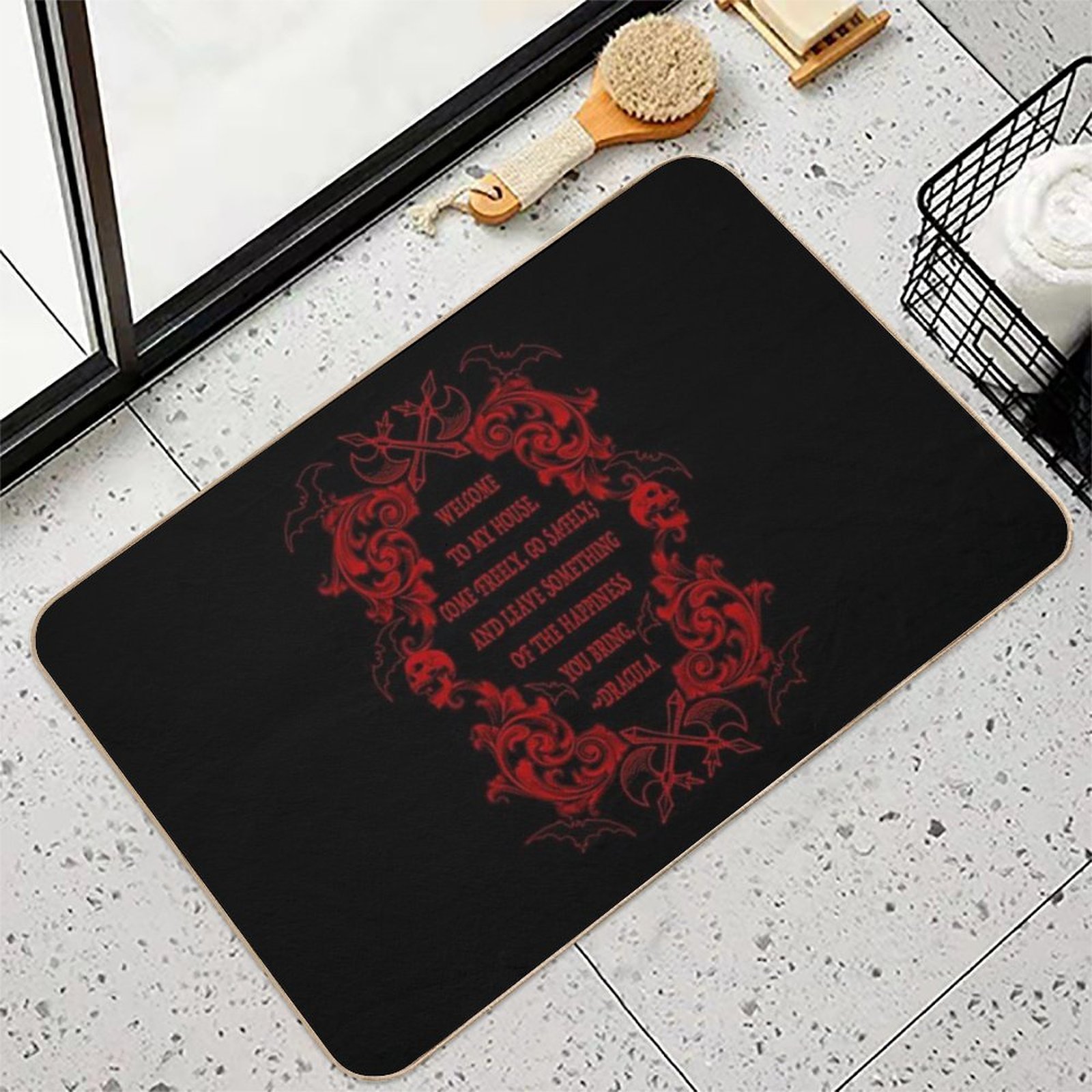 - Use as a vanity rug, guest suite accent, or mudroom defender – the Dracula Quote Mat adapts to any space.